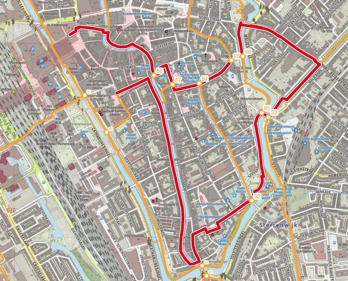 We will start our walk on Vredenburg and end at Mariaplaats, or any other ‘terrasje’ that looks good near the end. Café de Stichtse Taveerne at Twijnstraat 43 was a pleasant finish on a previous walk, so it depends a bit on the actual weather conditions and how tired of walking we are near the end. Make sure you bring your QR code if you wish to join in for a drink afterwards.